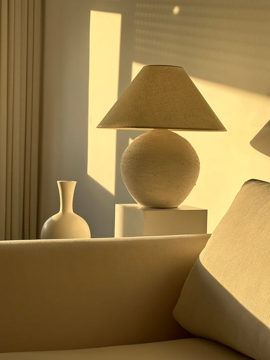 Each ceramic lamp and vase is hand-formed in our Istanbul atelier, leaving subtle traces of craftsmanship in every curve and surface. From unglazed stone finishes to warm earthy glazes, every piece is inspired by the calm imperfection of nature. Pair them with our linen or raffia lampshades to create a space that feels warm, refined, and effortlessly personal.